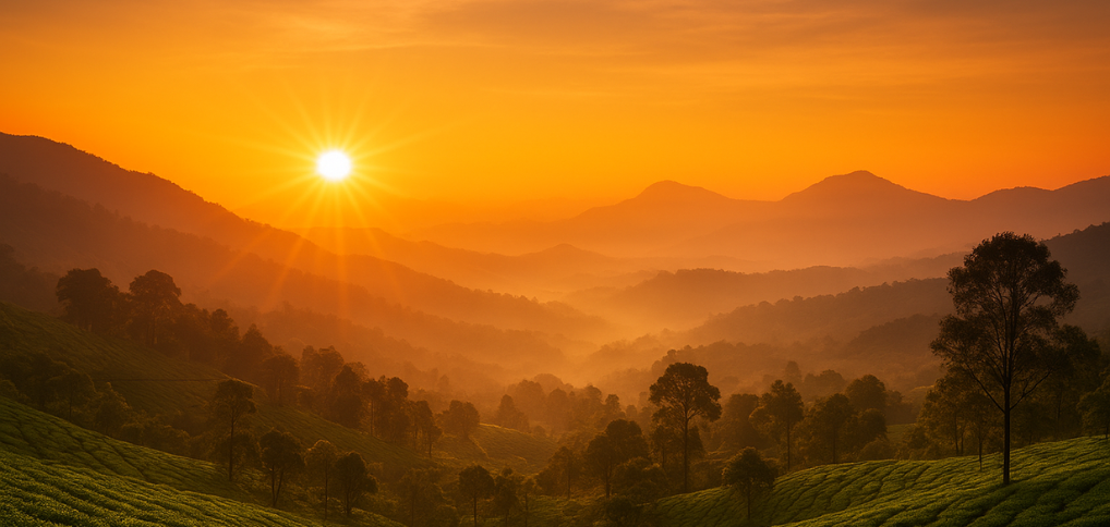 At Pleasant Hill Munnar, the day begins long before the world wakes up.The first light breaks over the valley, touching the dew-covered tea leaves and turning everything amber and gold.
